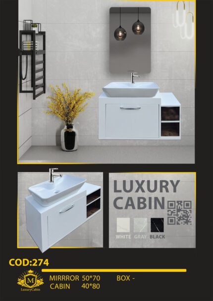 «روشویی کابینتی کوچک کد 148 از لاکچری کابین؛ طراحی جمعوجور و مدرن با کیفیت بالا و قیمت اقتصادی. بهترین انتخاب برای فضاهای کوچک.»